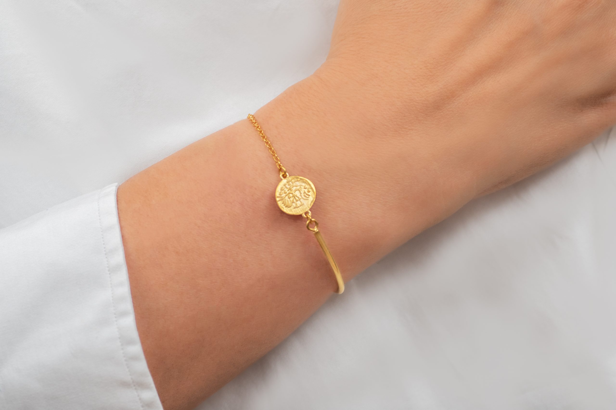 სამაჯური შექმნილია ალექსანდრე მაკედონელის სტატერის (მონეტა) ადგილობრივი მინაბაძის ინსპირაციით, რომელიც მიმოქცევაში იყო საქართველოს ტერიტორიაზე. სტატერი დათარიღებულია ძვ.წ. II-I საუკუნეებით და აღმოჩენილია სოფ. ბორში, ხარაგაულის რაიონი, იმერეთი, საქართველო.